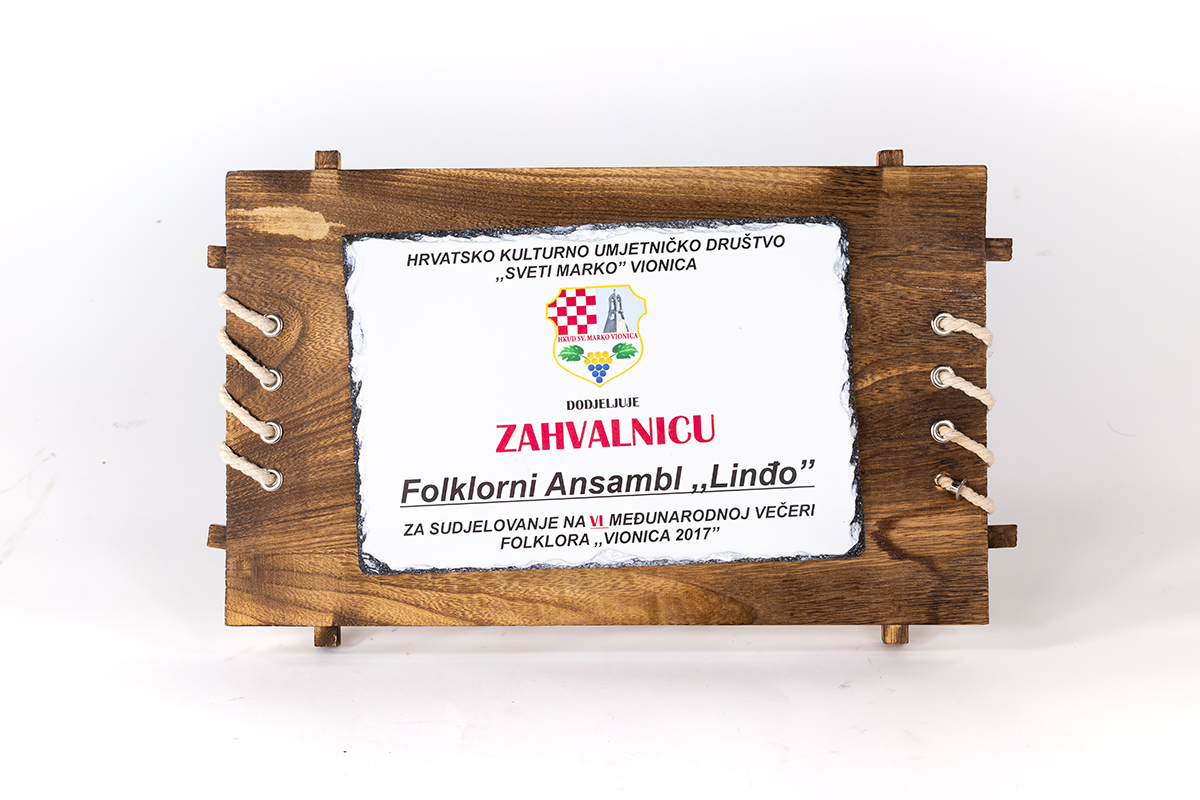 FAL M 11, Zahvalnica Hrvatskog kulturno umjetničkog društva Sveti Marko Vionica za sudjelovanje na 6. Međunarodnoj smotri folklora, 2017.