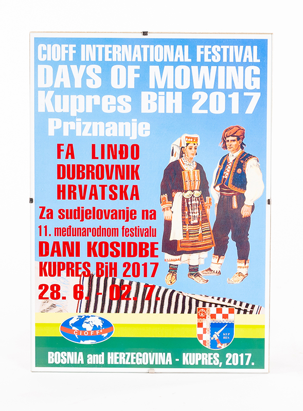 FAL M 74, Priznanje za sudjelovanje na 11. međunarodnom festivalu Dani kosidbe, Kupres, Bosna i Hercegovina, 28. lipnja - 6. srpnja. 2017