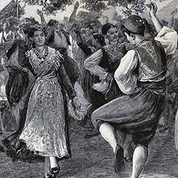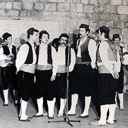 Tradicijska kultura Dubrovnika i okolice>Plesna i glazbena baština Plesna i glazbena baština Kola i kulturno-povijesni kontekst izvedbe Mačevni plesovi u Dubrovniku i Dalmaciji Ples krojača Ples postolara i proslava 1. svibnja Čoroje, Vila i Turica i njihov rozzo ballo campestre Ples Trznica – il ballo dell' abodanza Palij, alka i kolač ili biočug Povijest dubrovačke poskočice - Linđa Konavsko potkolo Građanski plesovi u 18. i19. stoljeću Dubrovačke poskočice u 20. stoljeću Ostali plesovi dubrovačke okolice Pojava organiziranog folklora Tradicijski oblici pjevanja Arhivski snimci tradicijske glazbe